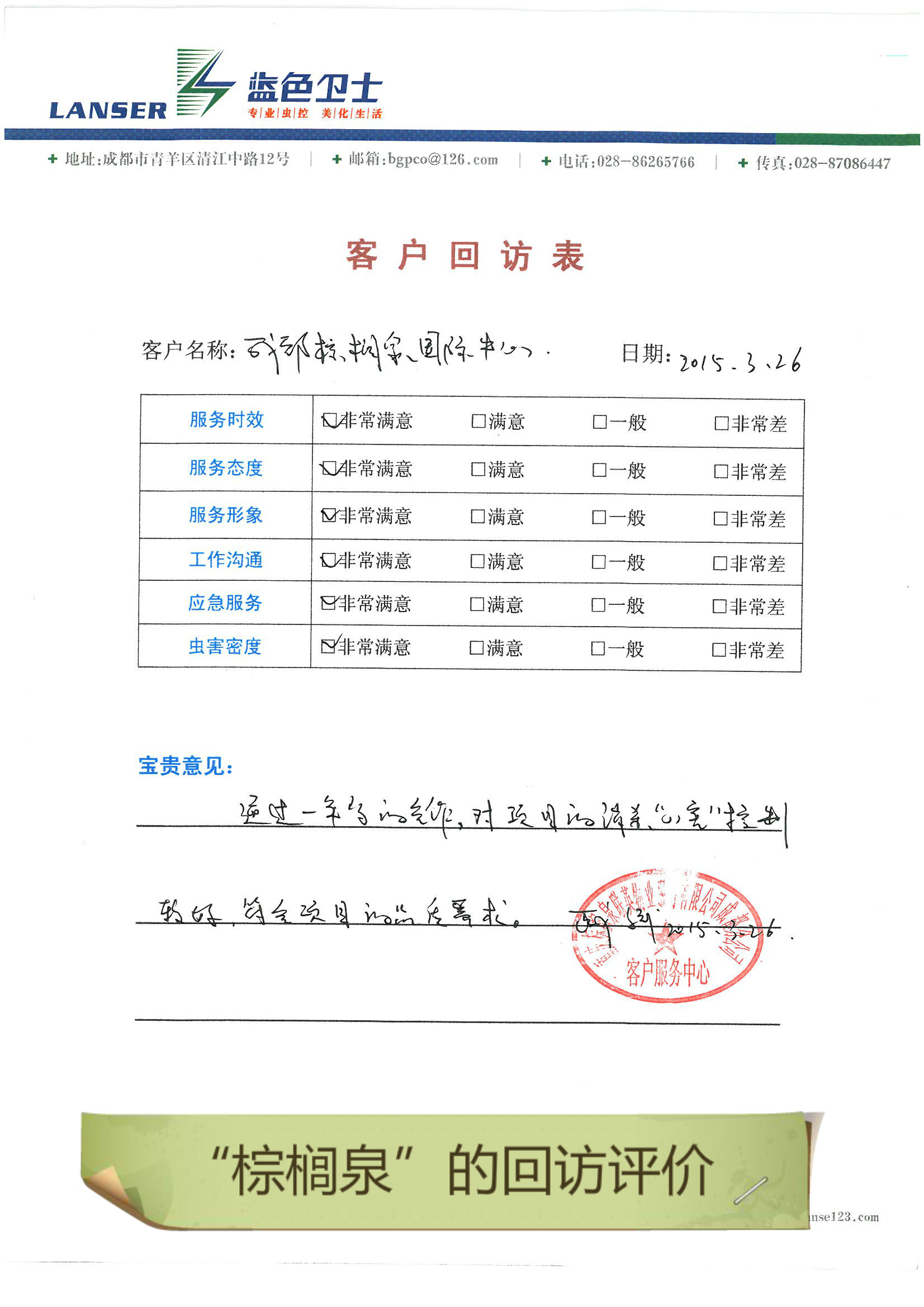 • 棕櫚泉的回訪評(píng)價(jià)